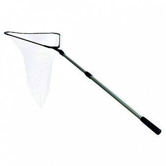 Длинный складной подсачек с треугольной формой сачка с сеткой из лески, оборудованный телескопической рукояткой.