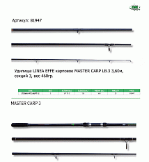 Удилище карповое MASTER CARP LB.3 Lineaeffe 2723636 3,6 м 460 г секций 3