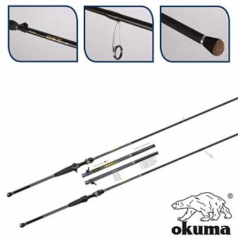 Ультралёгкое удилище быстрого строя, изготовленное из графита 40Т(IM9). Бланк изготовлен по передовой технологии укладки углеволокна. Оснащено кольцами FUJI K-серии с расстановкой по новой концепции. Оборудовано чрезвычайно лёгким новым разнесённым катушкодержателем от FUJI и запатентованной Okuma конусной карбоновой рукояткой. На бланке установлено скользящее крепление для крючка от FUJI.