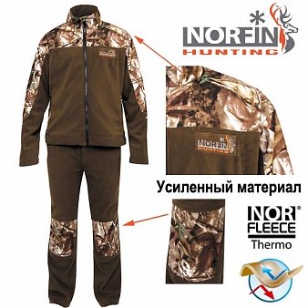 Комфортный теплый костюм cвободного кроя. Рекомендуется для активного отдыха на природе и ежедневной носки. Костюм имеет усиление материала прочными накладки на местах, подверженных повышенным нагрузкам.КУРТКА: Свободный крой. Передняя застежка-молния. Высокий воротник. Усиление материала на плечах и локтях. Фиксатор, стягивающий низ куртки. Два боковых кармана. Нагрудный карман. ШТАНЫ: Свободный крой. Усиление материала сзади и на коленях. Два боковых кармана. Эластичный пояс. Материал: NORfleece Thermo (100% полиэстер)