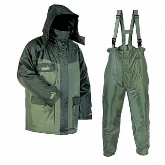 Зимний костюм из ветро- и водонепроницаемой ткани. Предназначен для эксплуатации при температуре до-15°C. КУРТКА: Двухзамковая застежка-молния с клапаном на «липучке»; Капюшон со стягивающим фиксатором и козырьком; Крепление капюшона на молнии; Внутренний карман для документов; Два накладных кармана с клапанами; Эластичные внутренние манжеты. ШТАНЫ: Завышенная талия; Ветронепродуваемая и водонепроницаемая ткань; Двухзамковая застежка-молния с клапаном на «липучке» ; Удобные, регулируемые по длине лямки на замках; Застежки-молнии с клапанами позволяют снять штаны,--не снимая обуви. Материал: НЕЙЛОН с ПВХ покрытием . Утеплитель: THERMO GUARD (100% полиэстер) . Подкладка: НЕЙЛОН.