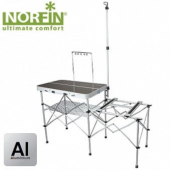 Кухня кемпинговая складная. Подставка под плиту, просторная рабочая поверхность, подвес для кухонных инструментов, решетка для хранения, кронштейн для лампы. В сложенном состоянии представляет собой компактный чемоданчик. характеристики и материалы: габариты (см): 82x83x81 Размер в сложенном виде (см): 84x12,5x30 Вес (кг) 8,7 Максимальная нагрузка (кг) 30 Каркас: алюминий 19 мм, MDF Комплектуется сумкой-чехлом для удобства транспортировки