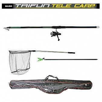 Удочка-комплект состоит из мощного телескопического удилища TAIFUN TELE CARP и катушки TAIFUN в пластиковой сумке.Удилище предназначено для ловли крупной рыбы:карпа,щуки на живца, а также крупной форели в прудовых хозяйствах.На шпулю катушки намотана монофильная леска.