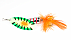 Серия блесен Tailsmoker SN-03. Эта блесна с вытянутым лепестком типа «ивовый лист» предназначена для ловли на течении. Малый угол вращения лепестка и продолговатый тяжелый сердечник обеспечивают стабильную работу блесны даже при проводке против сильного течения. Однако это совсем не означает, что эта блесна не будет привлекать хищников и в спокойной воде. Просто при ловле в водоемах без течения ее нужно применять в более глубоких местах, чем, допустим предыдущую модель. Искусно связанная мушка гармонично дополняет и без того уловистую блесну, являясь дополнительным раздражителем для хищника, который заинтересовался блесной с большого расстояния.