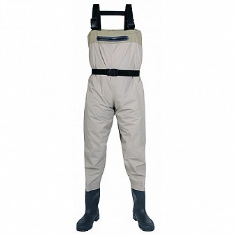 Верхняя часть забродных сапог сделана из высококачественного трехслойного "дышащего" материала. Сапоги изготовлены их лёгкого и прочного ПВХ, Карман с водонепроницаемой застёжкой-молнией, Регулируемые помочи, Регулируемый пояс, Водостойкость: 14000мм/кв.м Дышащая способность: 3000г/кв.мм/24ч