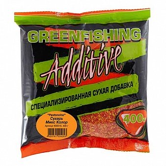 "Pastoncino"- добавка при приготовлении прикормки, ярко окрашенные частицы придают дополнительные механические свойства, а яркие цвета привлекают рыбу к точке прикармливания. Выпускается в шести цветах, гранула 2 мм, упаковано в прочный пакет по 400 грамм. Добавка предназначена для приготовления прикормки во всесезонных условиях и холодной воды.