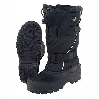 Сапоги изготовлены из прочного нейлона 900D OXFORD, обеспечивают термозащиту в динамике при температуре до - 30°C. Для удобства и разгрузки мышц ног при длительной ходьбе, на их голенищах имеются по две регулируемые стяжки с замками. Верх сапога имеет защиту от снега с кнопочным фиксатором. Вынимаемые вкладыши толщиной 9 мм обеспечивают надежную термоизоляцию: полипропиленовый слой – обеспечивает термоизоляцию, а также впитывает и отводит влагу наружу, фольга отражает холод, поддерживая температуру тела. Подошва изготовлена из прочной термопластичной резины TPR: сохраняет эластичность при низкой температуре, имеет форму протектора, препятствующего скольжению.