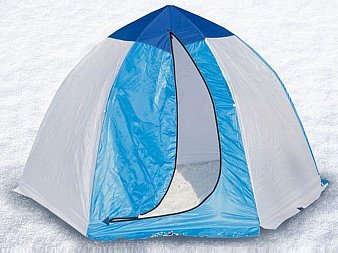 Зимние палатки СТЭК непродуваемы и непромокаемы. Расцветка тента выполнена так, что внутри палатки всегда достаточно светло благодаря белым вставкам и, кроме этого, она легко заметна на льду с большого расстояния из-за желтых и синих вставок.