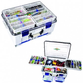 Прочная конструкция Комплектуется: WP3012 (2 шт.) Съёмные, поворотные лотки Съёмные перегородки в верхнем отсеке Полная водонепроницаемость верхнего отсека Крышка и защёлки из прочного поликарбоната Защита приманок полимером Zerust