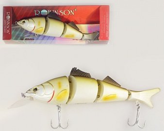 Воблер Robinson Joint Killer LT состоит из трех частей имея различные расцветки. Благодаря своему строению, каждая из частей попадая в воду создает движение, тем самым провоцируя хищника на атаку. При заглублении в воду принимает горизонтальное положениие создавая вокруг себя небольше колебания воды.