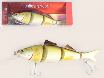 Воблер Robinson Joint Killer LT состоит из трех частей имея различные расцветки. Благодаря своему строению, каждая из частей попадая в воду создает движение, тем самым провоцируя хищника на атаку. При заглублении в воду принимает горизонтальное положениие создавая вокруг себя небольше колебания воды.