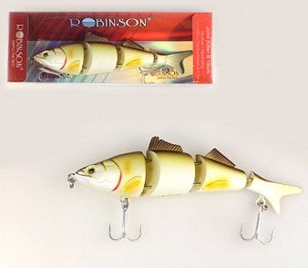 Воблер Robinson Joint Killer N состоит из трех частей имея различные расцветки. Благодаря своему строению, каждая из частей попадая в воду создает движение, тем самым провоцируя хищника на атаку. При заглублении в воду принимает горизонтальное положениие создавая вокруг себя небольше колебания воды.