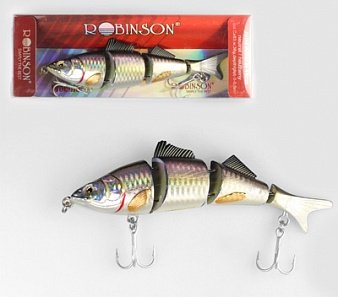 Воблер Robinson Joint Killer N состоит из трех частей имея различные расцветки. Благодаря своему строению, каждая из частей попадая в воду создает движение, тем самым провоцируя хищника на атаку. При заглублении в воду принимает горизонтальное положениие создавая вокруг себя небольше колебания воды.