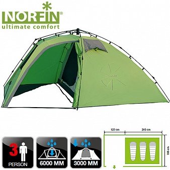 Двухслойная 3-х местная палатка с полуавтоматическим быстро сборным каркасом. Просторный тамбур на входе в палатку. Внутренняя палатка и тент устанавливаются одновременно. Установка палатки может быть совершена одним человеком за считанные секунды.